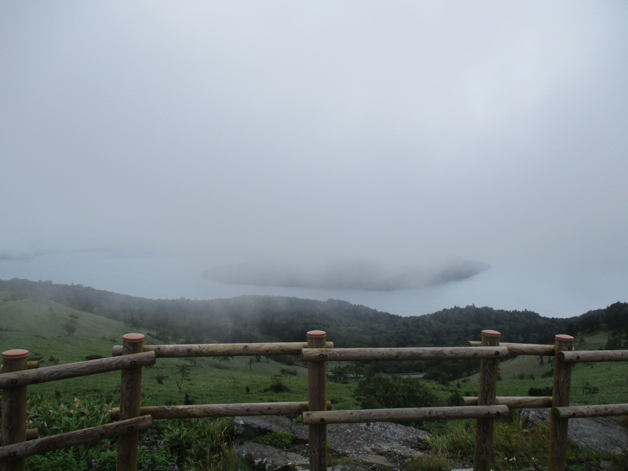 今回は、天気が不安定で雨が降ったり、霧で覆われたり、ほんの少し晴れ間が出てきたと思ったらまたすぐ霧に覆われてといった感じで、なかなかゆっくりと景色を楽しむことはできませんでしたが、それでも展望台から見る湖の全景は雄大で迫力がありました。