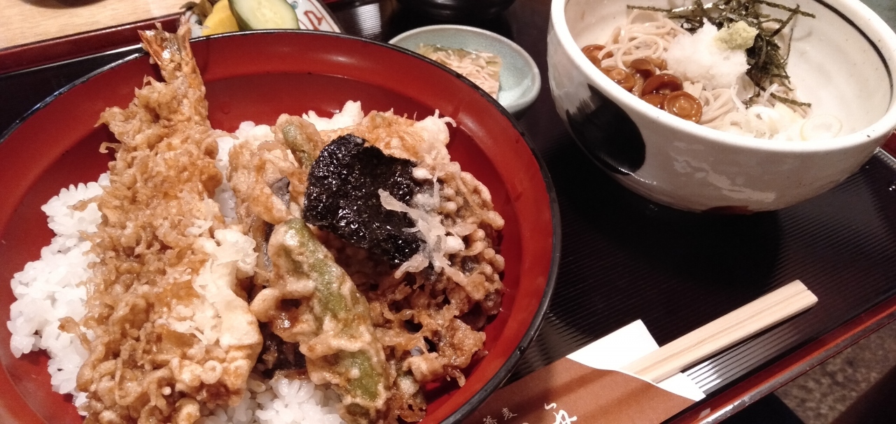 「天丼と蕎麦のセット」が1300円ほどで いただけます。