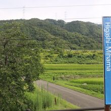 すぐ近くの背後の山のふもとを高速道路が走っていて、しかもインターが近いらしく、単線のローカル線との格差を著しく感じます。
