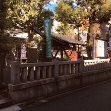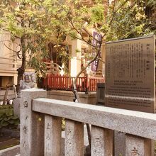 矢先稲荷神社の境内に説明看板がありますが、文章を読むには境内外側の道沿い側から読むこととなります。1698年に火事によって焼かれ、部下側に移転して再建されたとのこと。現在では跡形もなく、看板そばの青い井戸が目立っていました。