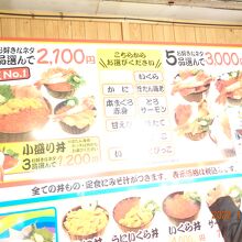 トラベラーさんの旅行記を見て、三角市場に行き昼食にすることに決めてました。予め食事処の店のメニューを見て「さんかく亭」さんにしました。