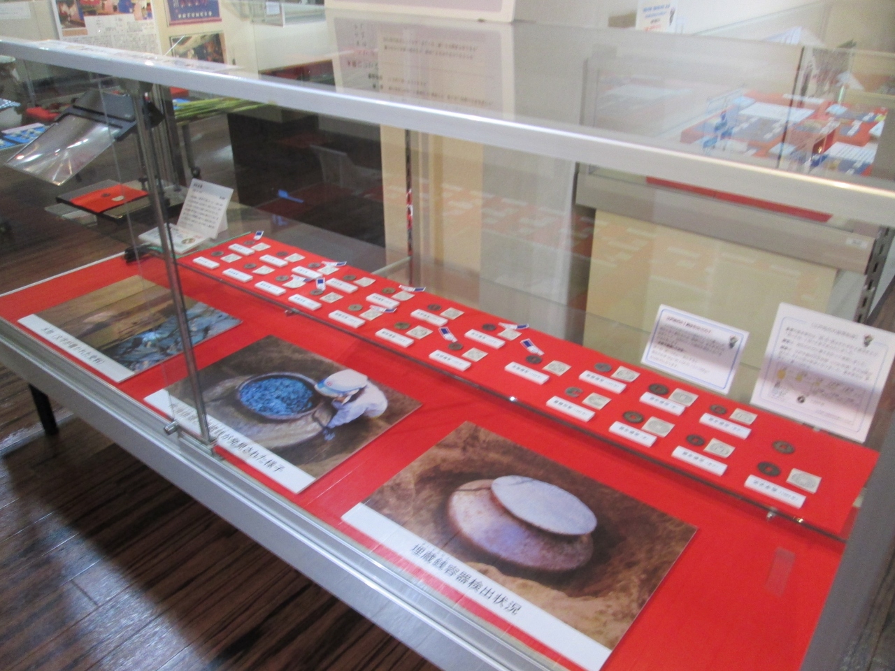 蓮田市の縄文時代からの歴史、黒浜貝塚に関する資料等が展示されています。土器、石器、埴輪、貝類、貝輪等、この種の展示館ではどこでも見られるものばかりで、目を惹くものはありませんでした。ただし中世屋敷跡と思われるところから、甕に入った20万枚の古銭が見つかったそうで、その一部が展示されていました。中には唐や明の古銭「開元通宝」や「永楽通宝」が確認され他にどのような古銭が入っているのか興味ある所です。展示館傍にある黒浜貝塚住居跡、復元住居を見ましたが、これも今まで見たものと変わりませんでした