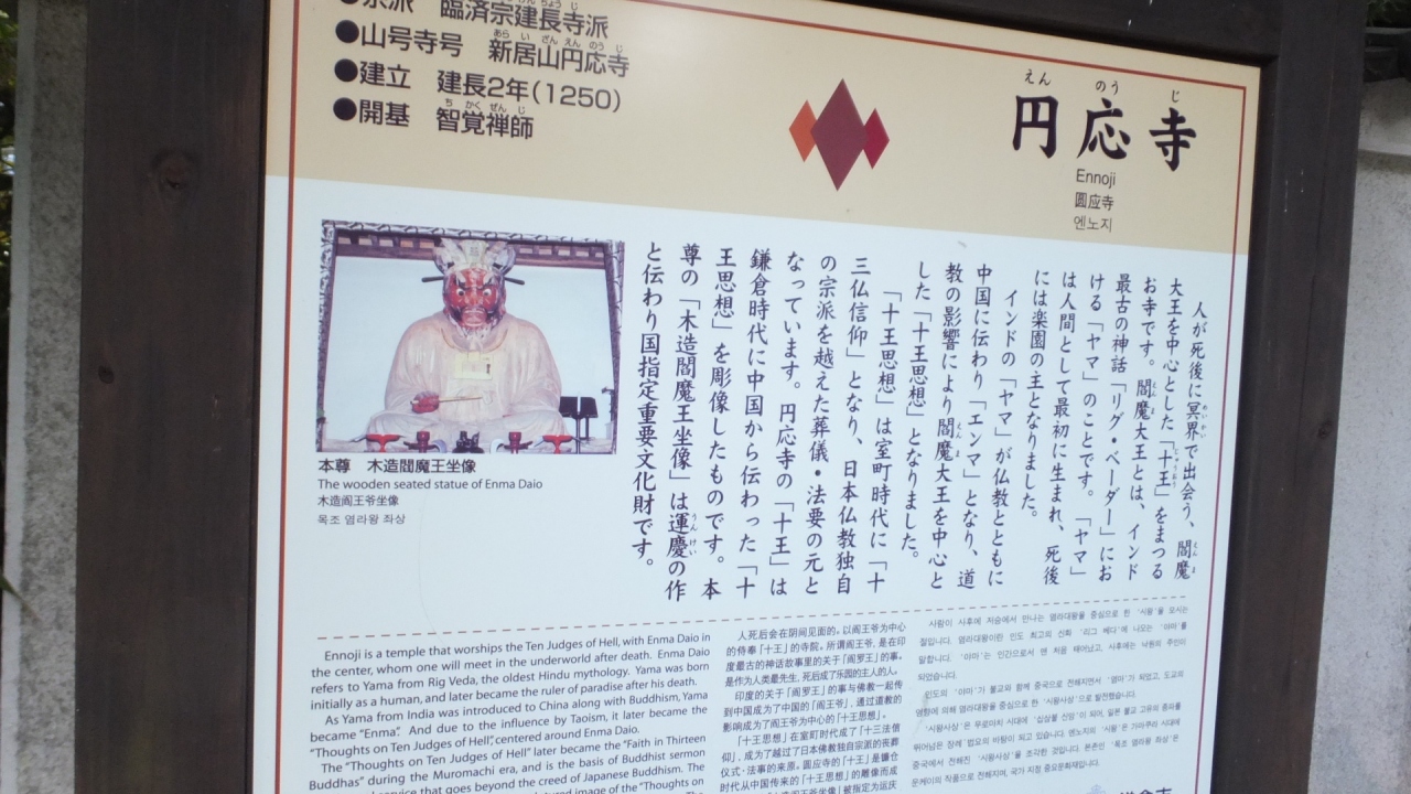 鎌倉にあるお寺です。閻魔様の像があることで有名な場所です。口を開けた迫力のある閻魔様の像を見ることができます。十王様の像もあるのですが、これも見事です。ただ、写真撮影はできないので残念。境内は広くないのでちょっとした時間で拝観できます。