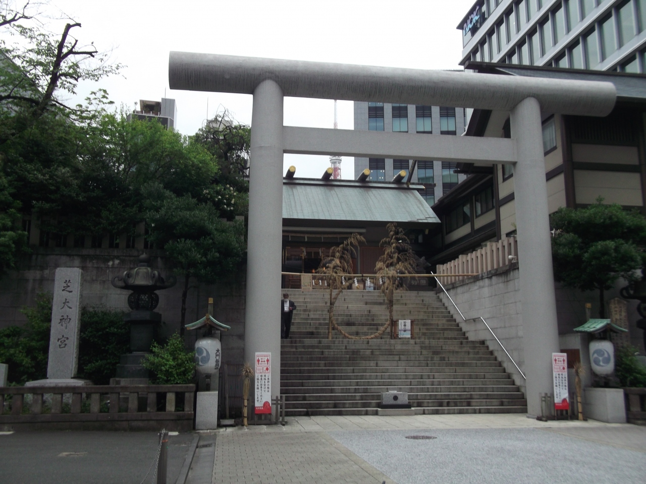 地下鉄浅草線大門駅から増上寺方向に歩いて3分ほどのところにある、創建から1000年の歴史のある神社です。ビルに囲まれた中の一角にあり、白い鳥居を抜け石段を登っていくと拝殿がありました。境内は広くはありませんがすっかり街の中に溶け込んでいて、この地域の特別な場所になっているように感じました。