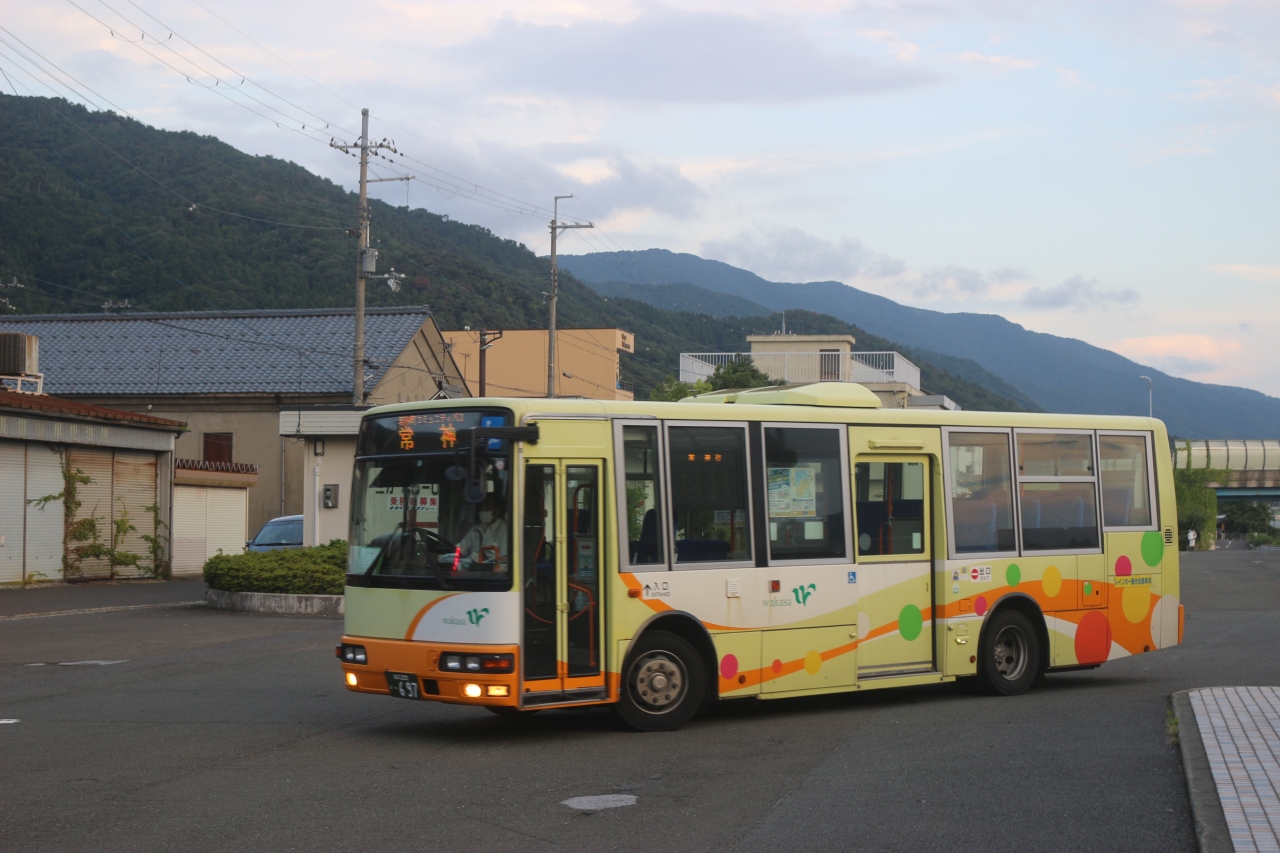 三方駅は無人駅のようですが、観光案内所やカフェが併設されています。レンタサイクルもありましいた駅前広場は広く、商店などもあります。ちょうど電車に接続して、常神半島の先端の常神行の町営バスが発車していました。