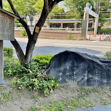 鴨川に架かる御池大橋の西詰南側の歩道にあります。1966年に漱石会が夏目漱石の生誕100年を記念して、句にゆかりの地に建てられました。石碑には句が刻まれていますが非常に読みづらかったです。漱石は4度にわたって京都を訪れており、4度目の際に宿泊した木屋町御池の旅館「北大嘉」がこの辺りにあったそうです。
