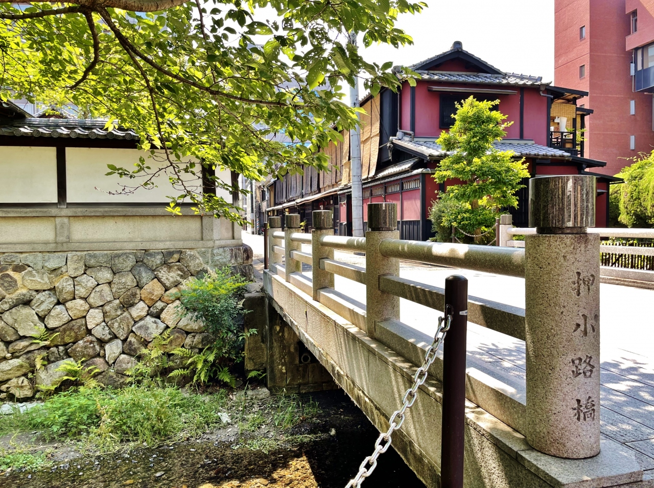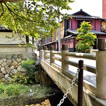高瀬川にかかる橋のひとつです。橋がある木屋町通辺りは高瀬川の源流に近く、一之船入が残る所です。高瀬川では数ヶ所の船入がありましたが今残っているのは一之船入のみとなっています。川沿いは京都の風情ある景色もあり、史跡や石碑を見ながら散策できます。