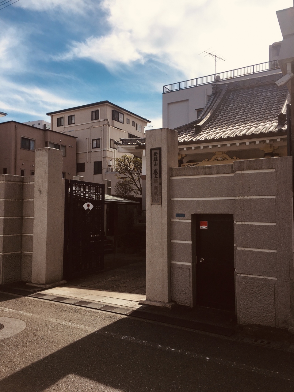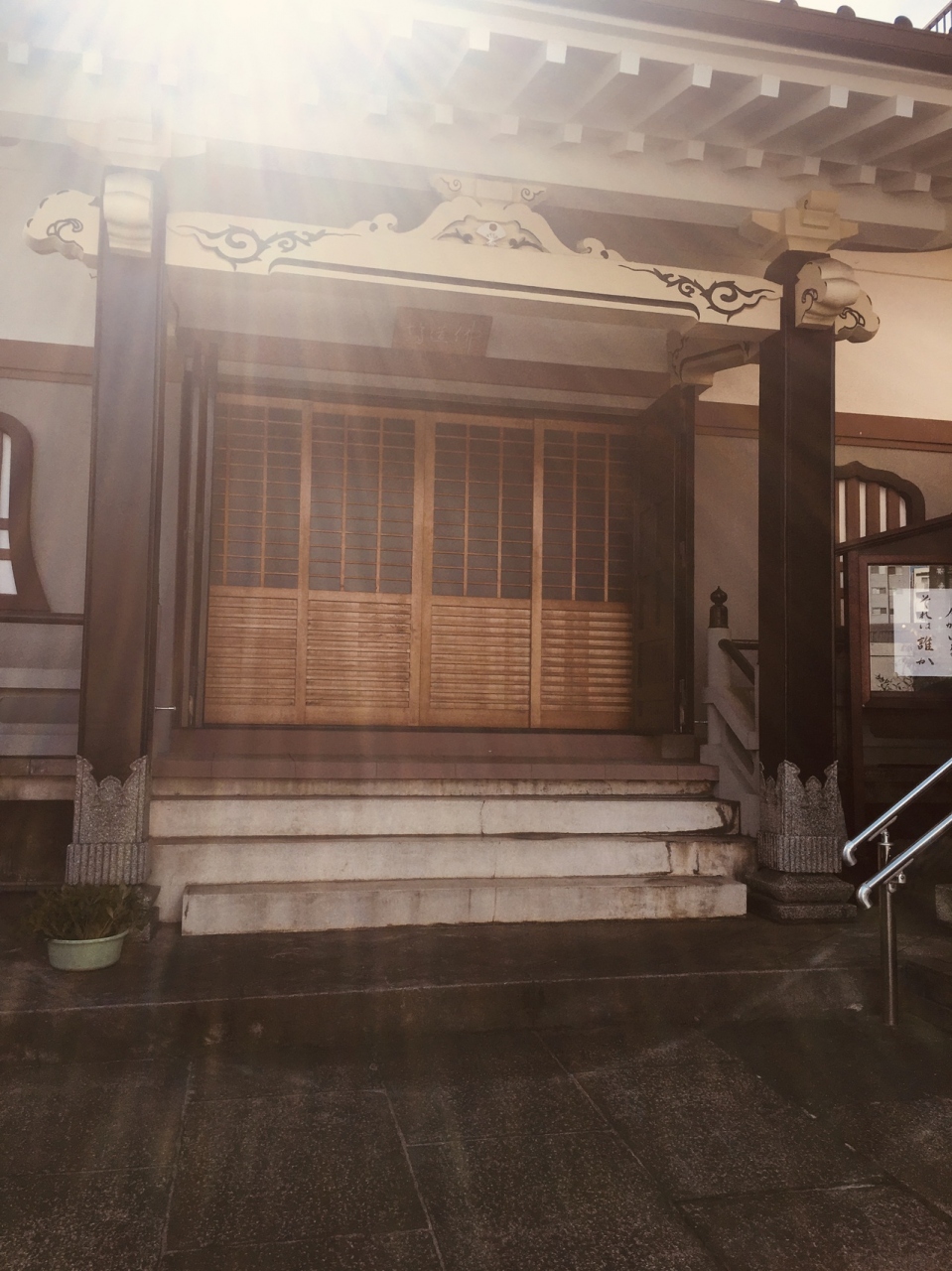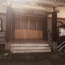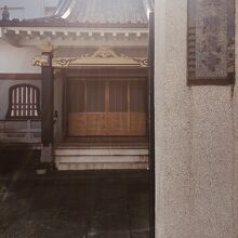 境内入ると直ぐに本堂があって、扉が横に開く建物で賽銭箱もなく簡易的な感じでした。横には墓地があり、他には何もないような感じの雰囲気でした。門には日本の国旗のマークのレプリカのようなものが貼り付けてありました。