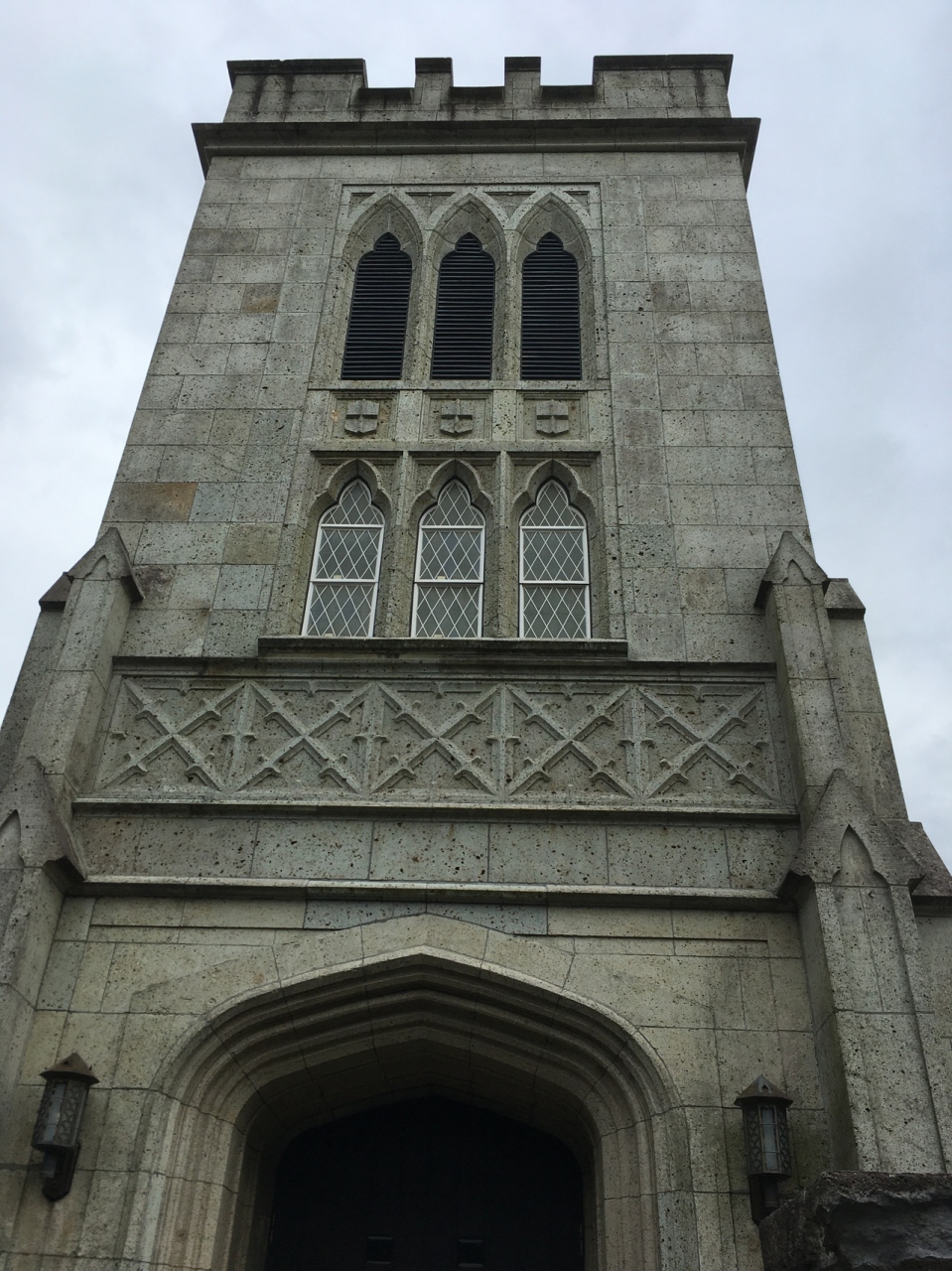 イギリス国教会の伝統を守るプロテスタントの教会で尖った塔が見あたらず、角型のどっしりした塔屋でゴシックではなくノルマンディ型なんだとか。