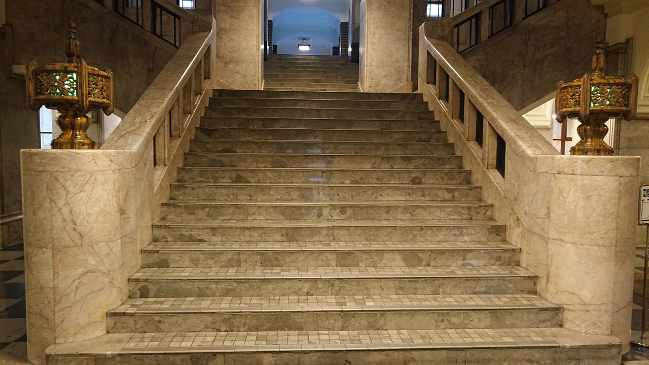 名古屋城から程近い立地している、現役の名古屋市庁舎です。11月上旬の平日夕方の時間帯に訪問しました。今回の訪問で、特に印象に残ったのは、正面玄関ホールの階段の、手すりと柱。大理石で造られており、風格がありました。
