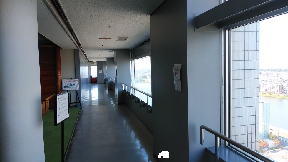 越後線関屋駅から徒歩25分くらいのところにある施設。土曜日に自転車でアクセスしたが、駐輪場は警察本部の裏側にあり、展望回廊の入り口側の東回廊からは少し距離があった。