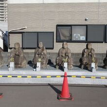 1メートルほどの小さな仏様が6体ほど鎮座していますが、その場所は「小学校の裏手」で、しかも「墓地の中」にあるのは、なんとも不思議な光景です。