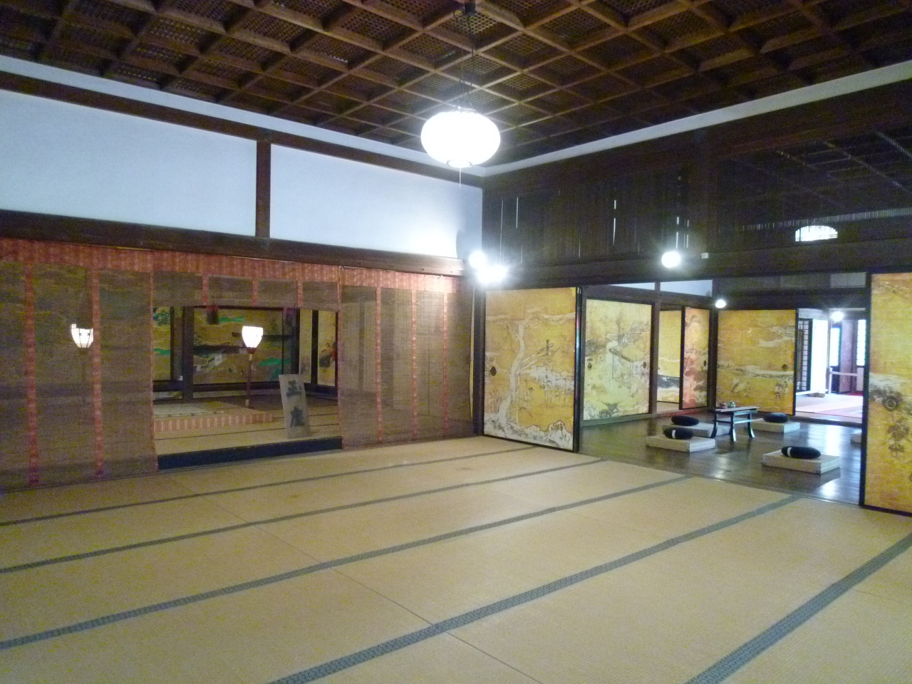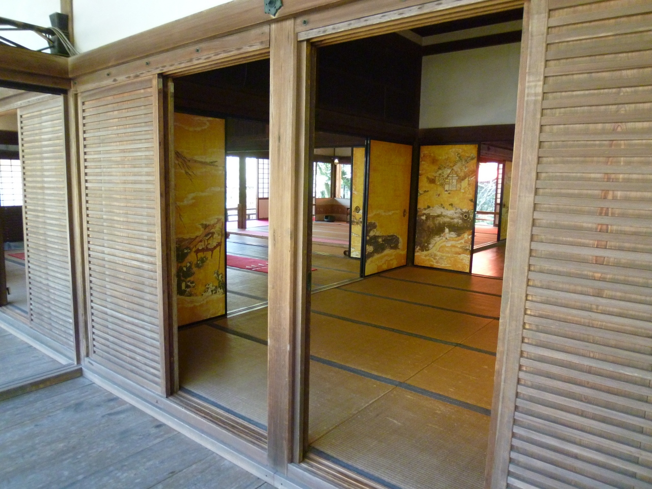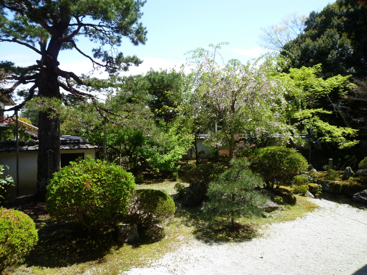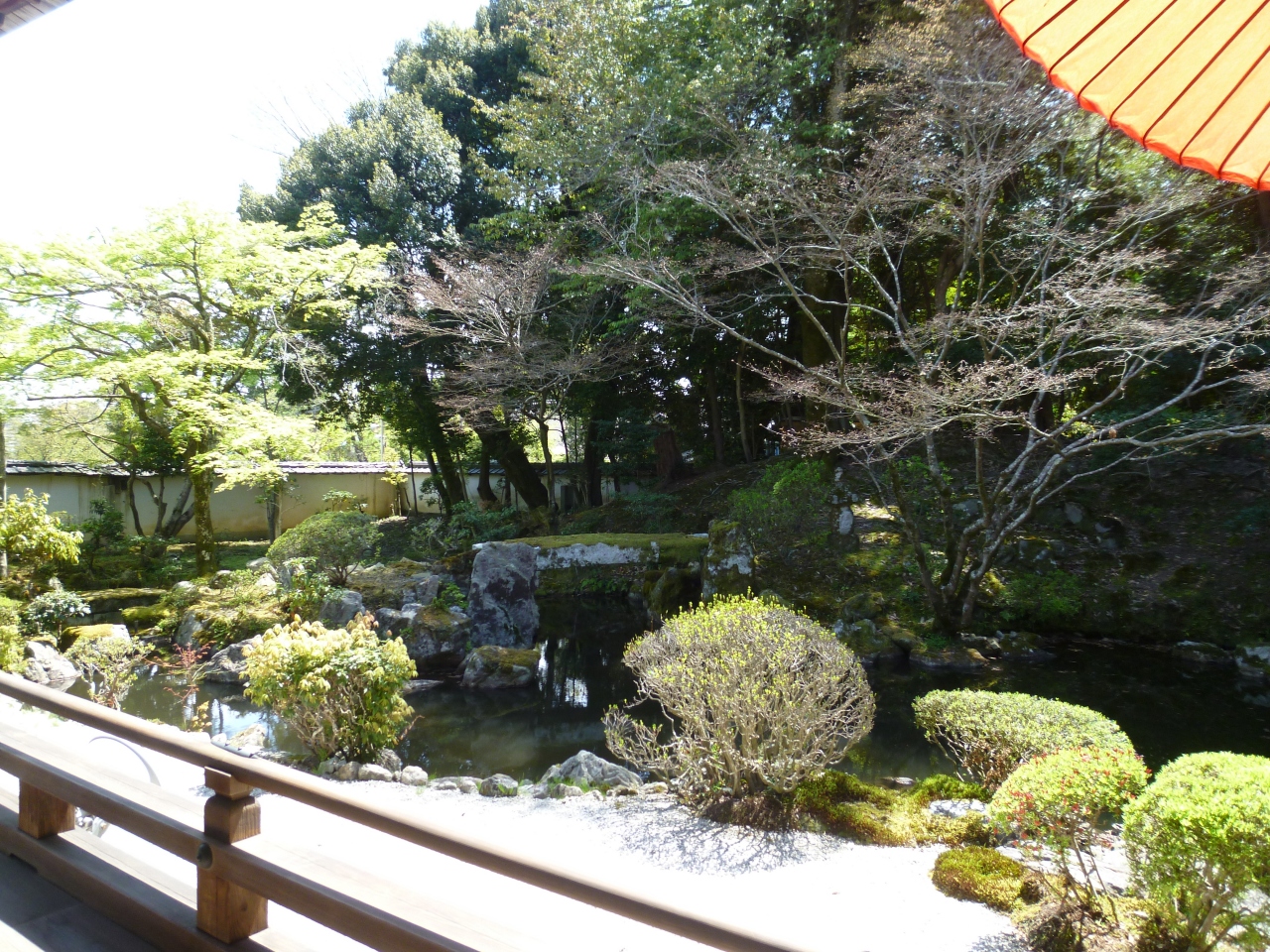 円満院は、三井寺の北隣に位置していて、無料の駐車場もあります。天台宗の門跡寺院で、皇室ゆかりの寺院です。庭園は、相阿弥の作と伝わり、宸殿に南に広がる東西に細長い庭園です。池泉には鶴亀が浮かび、池の手前には礼拝石のような石が一つありました。池中には中島が築かれ、石橋が架けられていました。宸殿は京都御所から移築されたもので、豪華絢爛な襖絵は狩野派一派により描かれたものだそうです。宸殿と庭園が見ごたえがありました。
