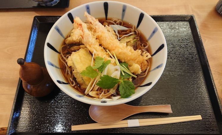 ご当地メニューのとんくりまぶしが気になりましたが、寒かったので暖かい天そばを頂きました。さっくと揚がった大きな海老が2本と存在感あり、出汁もきいて美味しくいただきました。