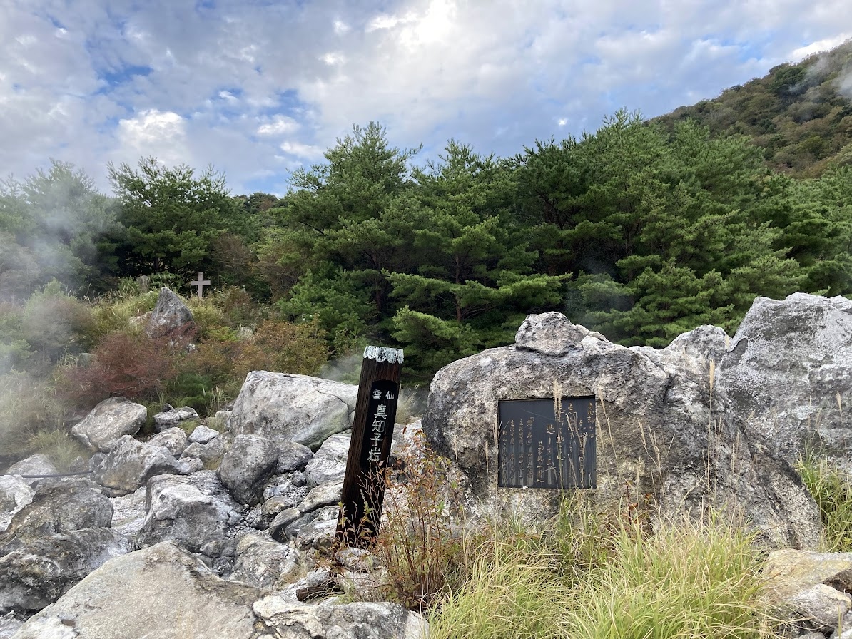 映画「君の名は」のロケで、ヒロインの岸恵子さんが手をついたと言われる「真知子岩」や「雲仙地獄キリシタン殉教碑」の十字架などもありました。