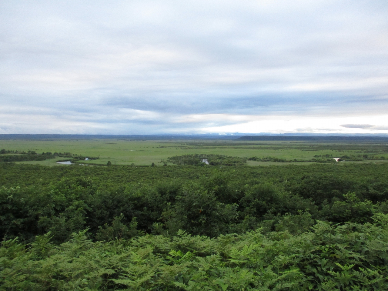 国内最大の湿原で一度は絶滅したと思われていた特別天然記念物のタンチョウ鶴の聖地です。湿原の大部分はヨシ原とハンノキ林などからなる低層湿原で、遠くから見るとサバンナのような印象でした。蛇行する原始河川が広大な湿原である事を感じました。