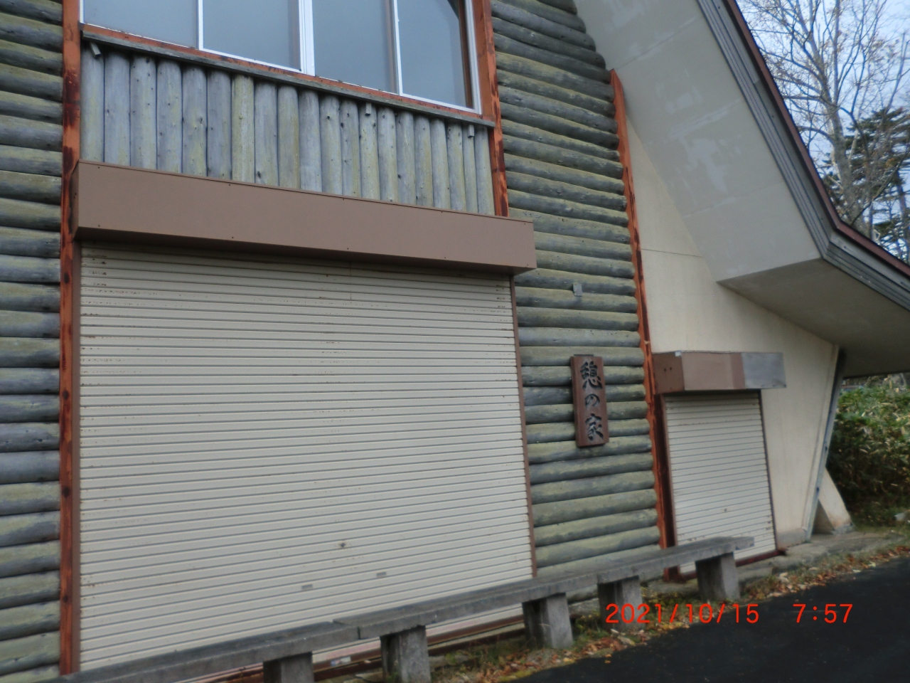 着くなり少し坂を登って行くと建物があり売店のようでした。しかし、大分前に閉店となっていたらしく廃墟でした。
