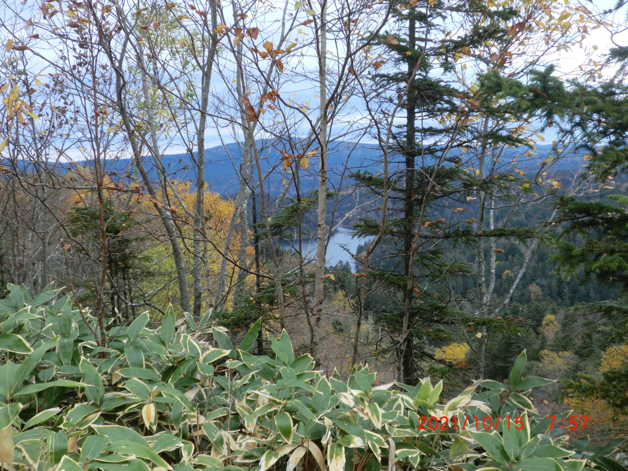 展望台もありましたが眺めはチラッと湖が見えるだけ、10月としては紅葉も期待外れ。