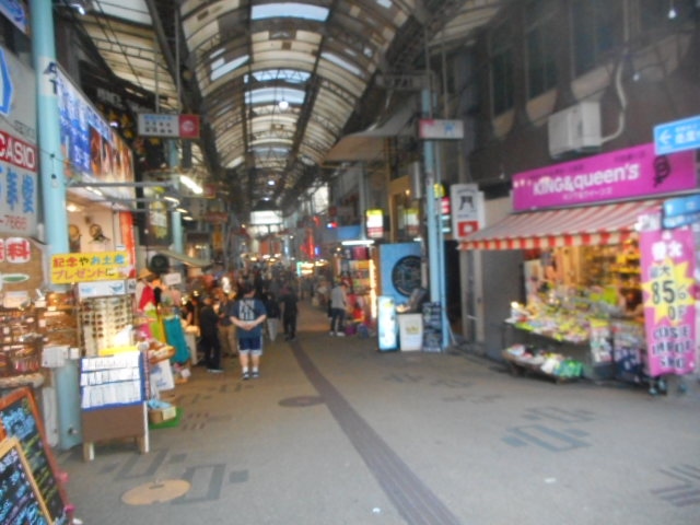 国際通りから出入りする市場通りが何ヶ所が在ります。平和通り商店街も小さなショップが軒を並べて出店しています。多くの沖縄土産ショップや地元民が買物に来て、人出も多く、混雑していました。修学旅行生が多くて驚きました。