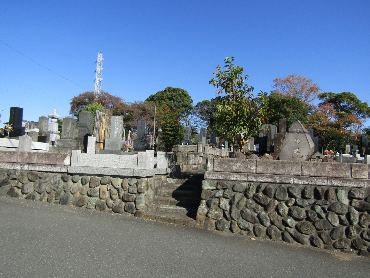 神奈川県寒川町岡田に所在する安楽寺の裏にある大神塚古墳の周りには安楽寺等の墓地が広がっている。