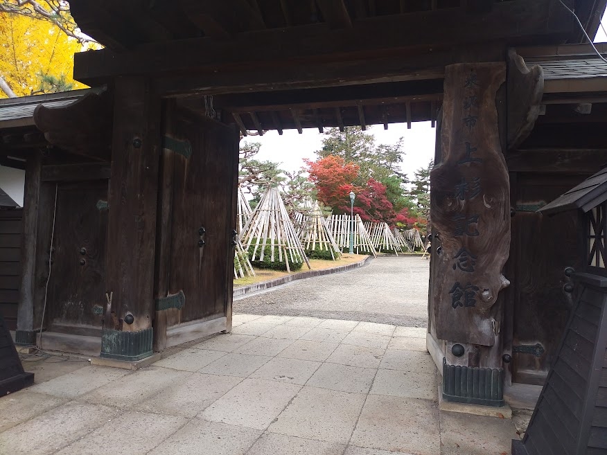 上杉神社のお堀に入る前に参道を左に曲がります。