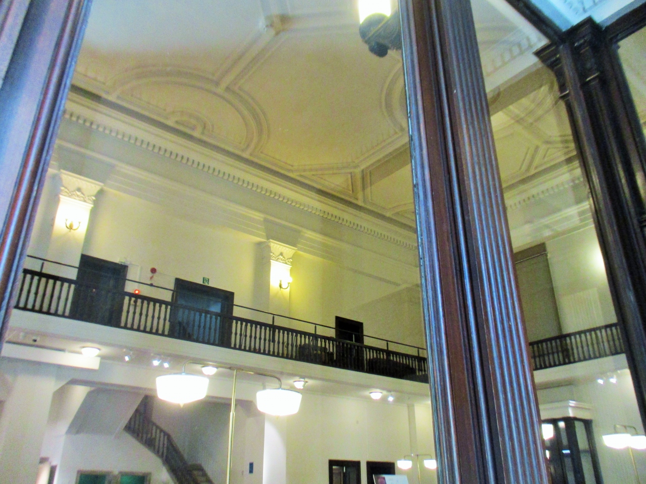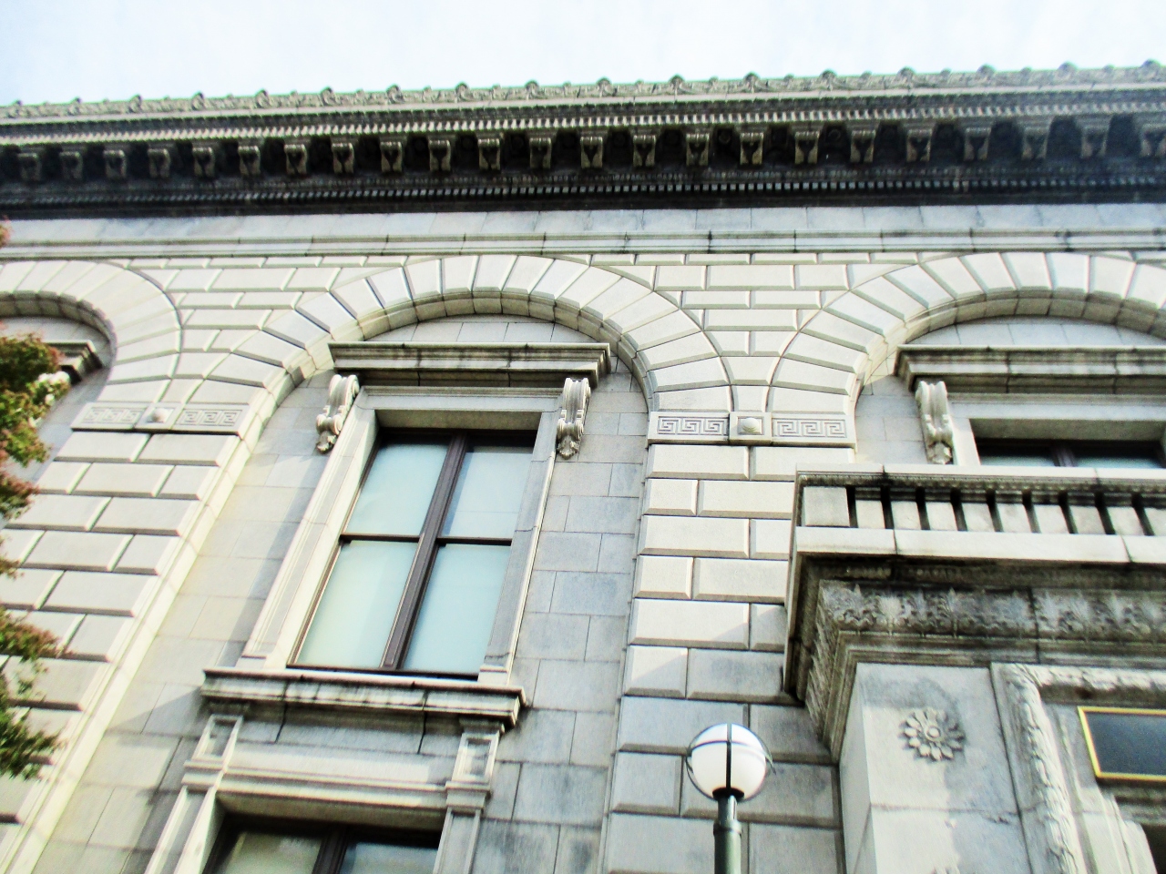 この建物は曾禰達蔵の設計、昭和2年に竣工、花崗岩を積み上げ石造を模した外壁で、翌年に完成した本店(東京)とほぼ同じスタイルで建てられているそうです。