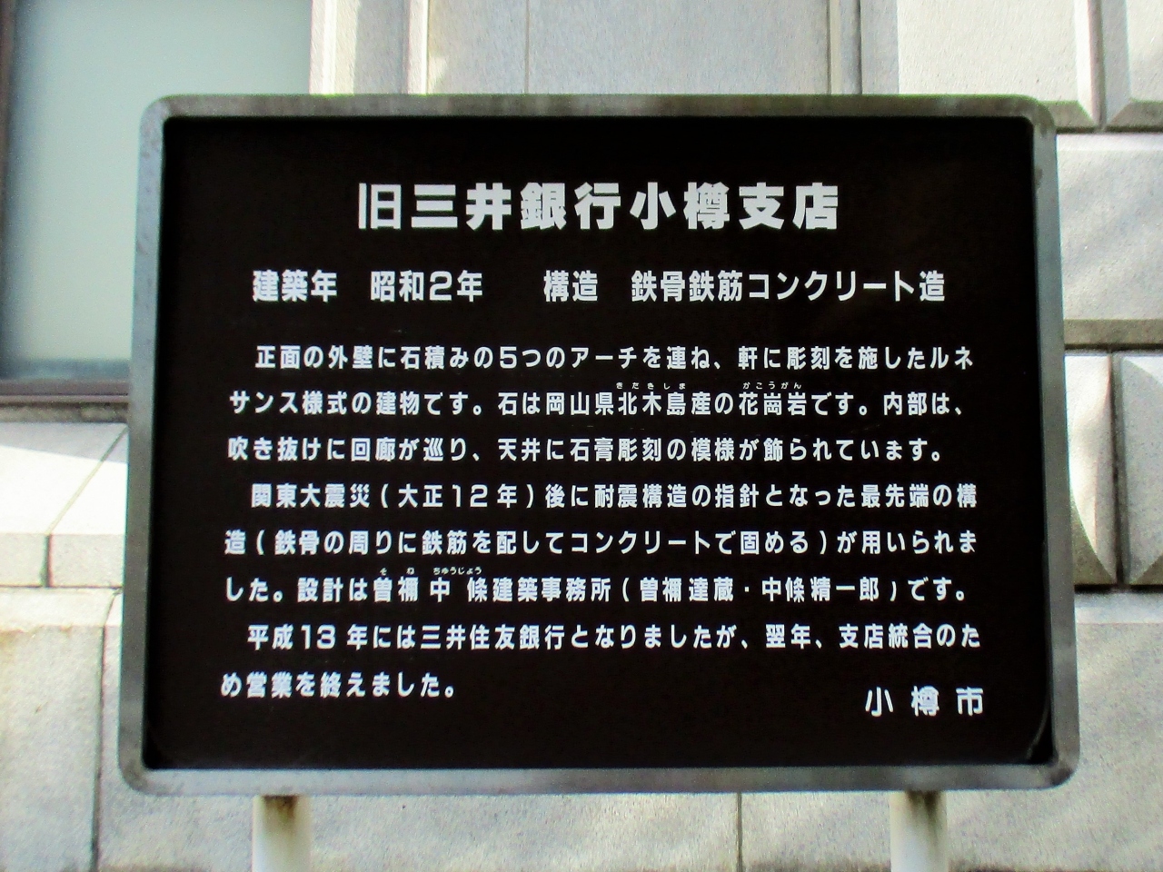 三井銀行は明治13年に小樽に出張所を開設、平成14年に撤退するまで122年間小樽で営業。