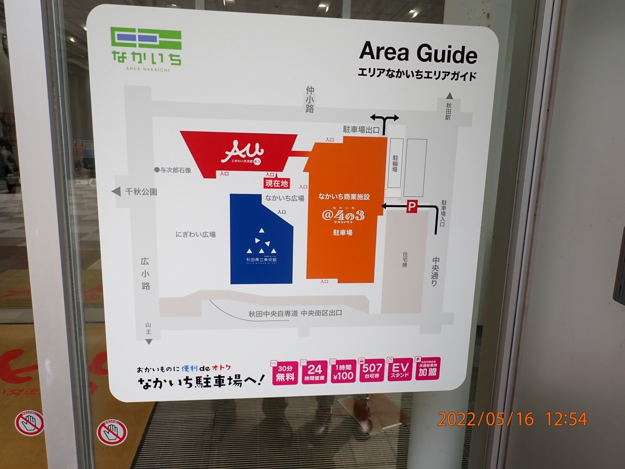 秋田市観光で立ち寄りました。エリアなかいちには、商業施設@4の3、にぎわい交流館AU 、秋田県立美術館、住宅棟の4つの施設と広場があります。商業施設@4の3の1階には秋田犬ステーションがあったのですが、ここでは秋田犬を見ることは出来ませんでした。