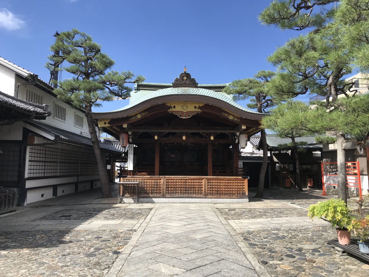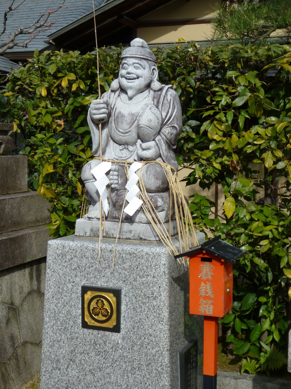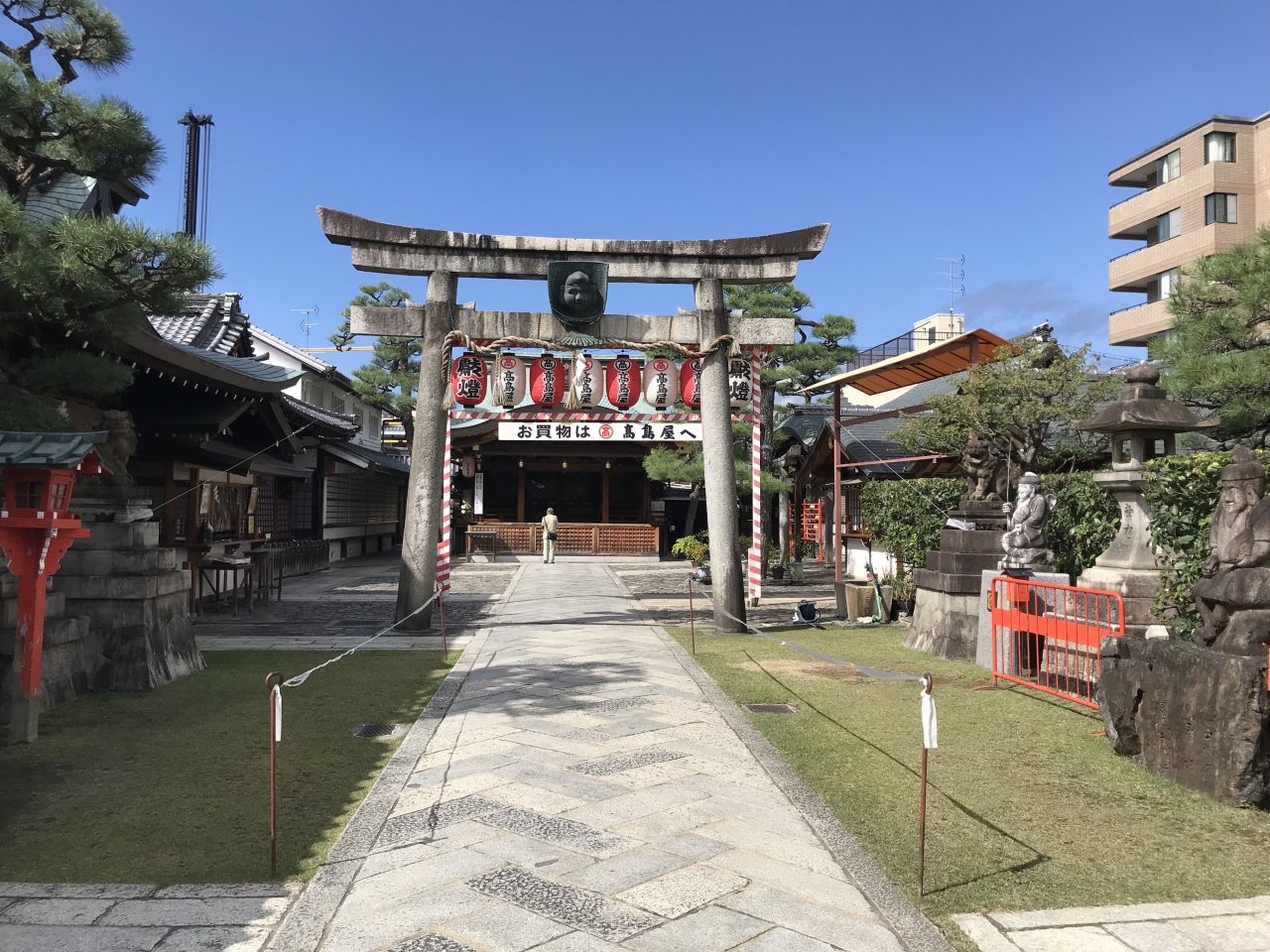 ゑびす神社は、西宮神社、今宮神社と並んで日本三大えびすと称されています。建仁2年(1202)栄西禅師が建仁寺建立に当たり、鎮守社として創建された歴史ある神社です。昔から「えべっさん」として親しまれている神社です。鳥居の上の方に恵美須さんのお顔があり、ここを参拝するといつもにこやかに迎えてくれている感じがします。また鳥居に福箕があり、そこへ向かってお賽銭を投げて入ると願い事が叶うと言われています。