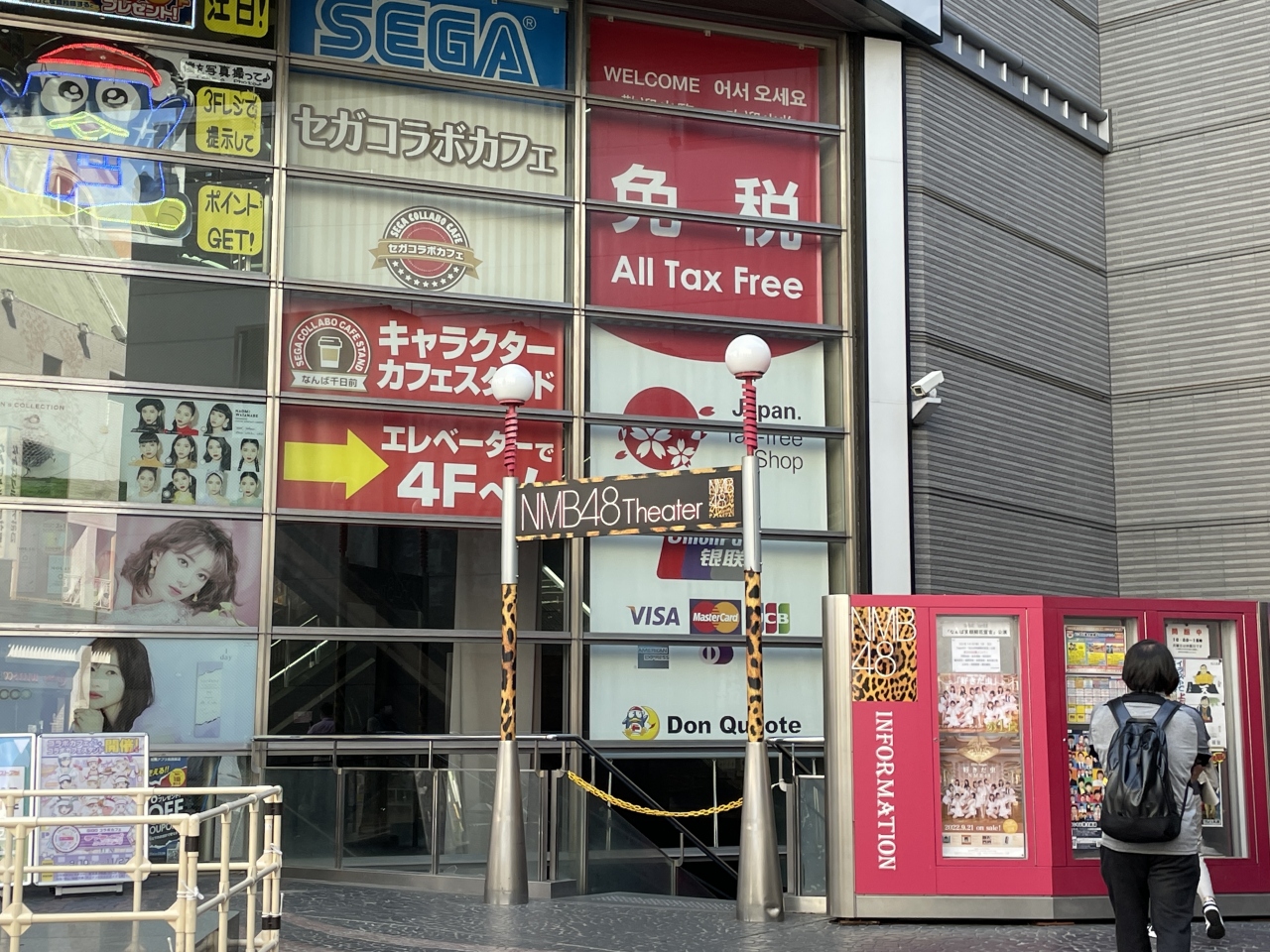 なんばグランド花月の向かい、地下1階にあります。AKB48の姉妹グループとして結成されたNMB48の専用劇場で2011年にオープンしました。劇場を拠点に、地元密着型アイドルとして活動しています。入口にはヒョウ柄の大阪らしいデザインが印象的です。