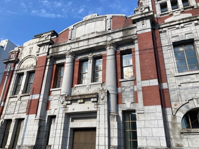 1917年に建てられた建造物です。この建物の特徴は、見事な意匠に尽きると思います。基本的にはルネサンス様式だと思われます。写真でもわかるように赤煉瓦と御影石が同じ壁面に用いられています。少し離れたところから見ると、屋根にも特徴のあることがわかります。