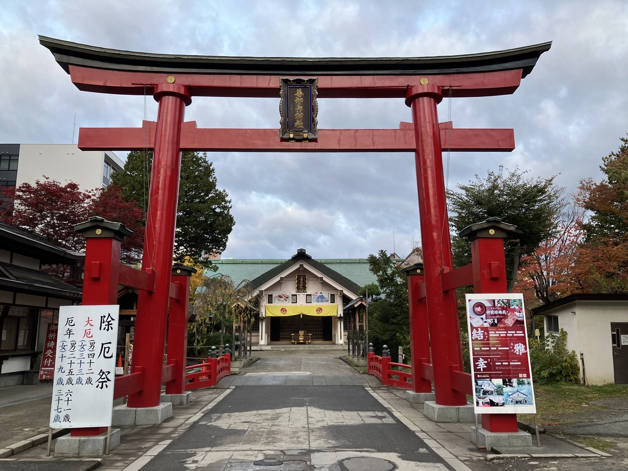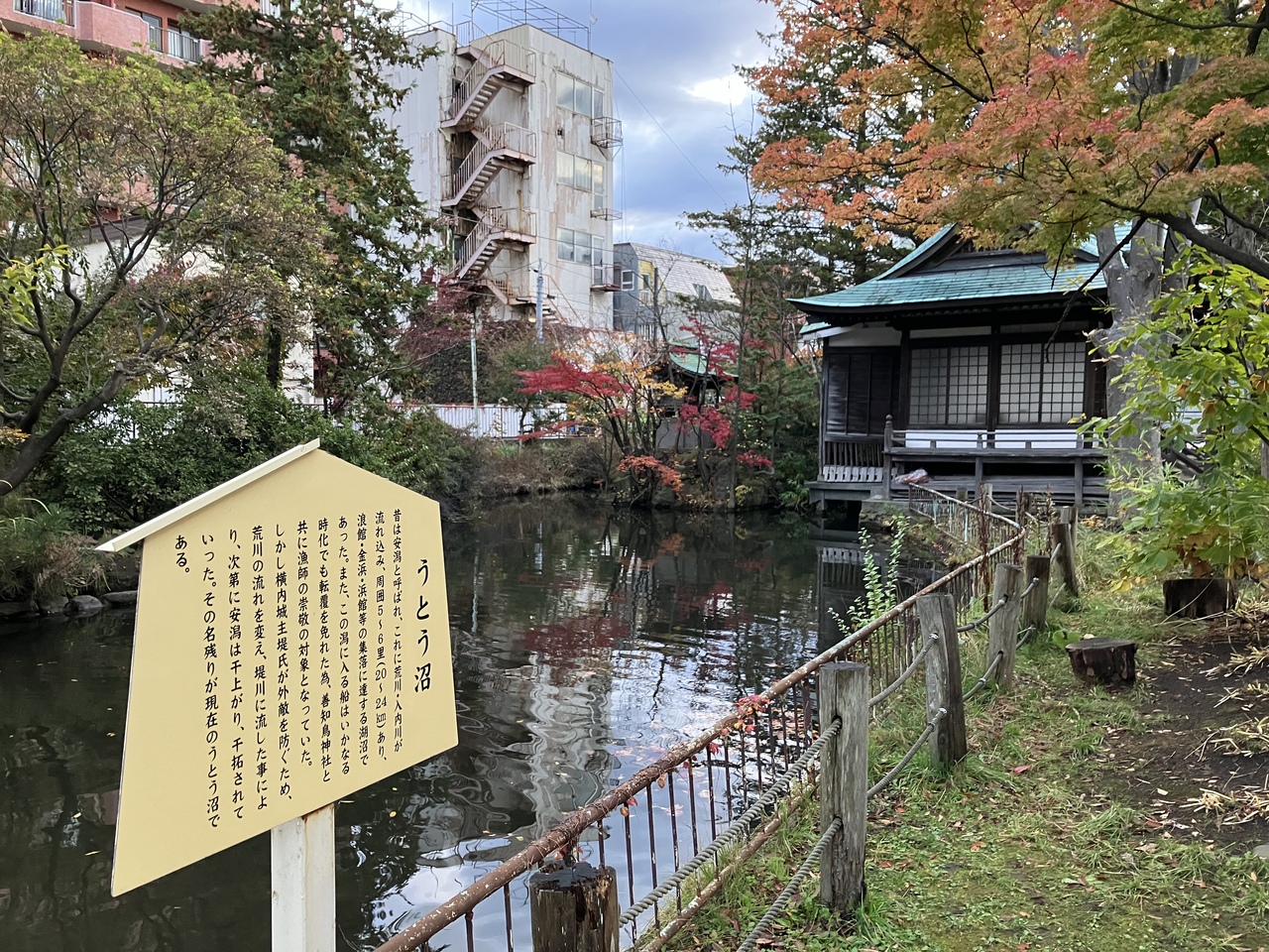 青森駅東口から「新町通り」を東へ徒歩で15分ほどです。「うとう」神社と読みます。今の青森市は以前「善知鳥中納言安方」がこの地を納めており「善知鳥村」と呼ばれていたそうです。安方がアマテラス大神の御子・宗像三女神を祭神として祀ったことが始まりです。今も家内安全、商売繁盛、交通安全の神さまとして市民の信仰が厚いです。境内には湧水「龍神水」や「うとう沼」、松尾芭蕉の句碑など見るべきものが多いです。