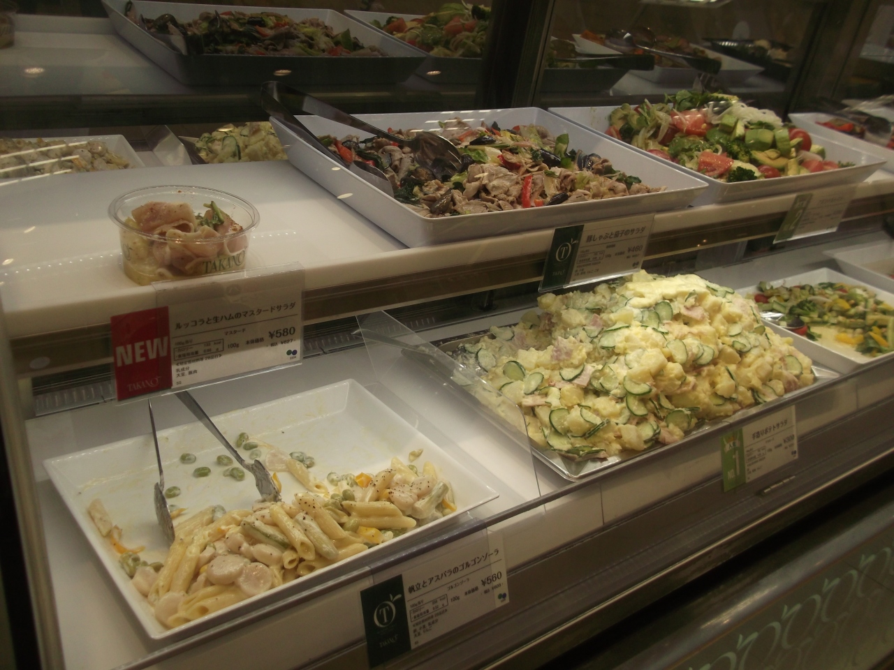 横浜駅東口隣接のそごう地下食料品店フロアにある、新宿高野のサラダショップです。ショーケースの中には、いかにも新宿高野らしいおしゃれな感じのするサラダが並んでいました。値段はやや高めですが、ここならではのサラダを味わえます。