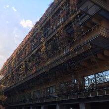 建物がたくさんあるのですが、グリーンカーテンみたいな個性的な建物も発見!
