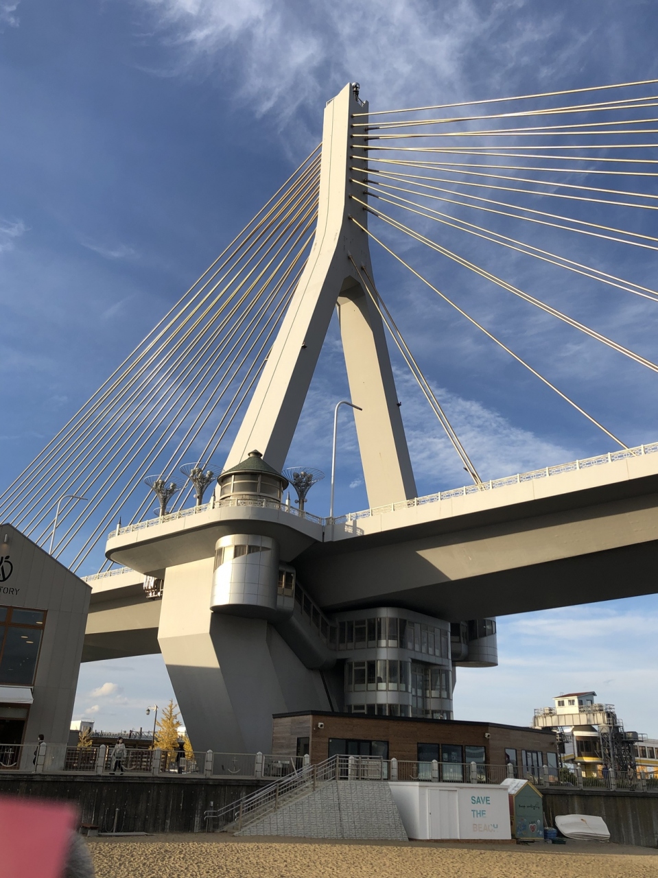 アスパム、海岸、そしてこの橋の景観は綺麗で近代的です。道路渋滞緩和のため作られたそうですが、遠目からも目立ち、美しいです。