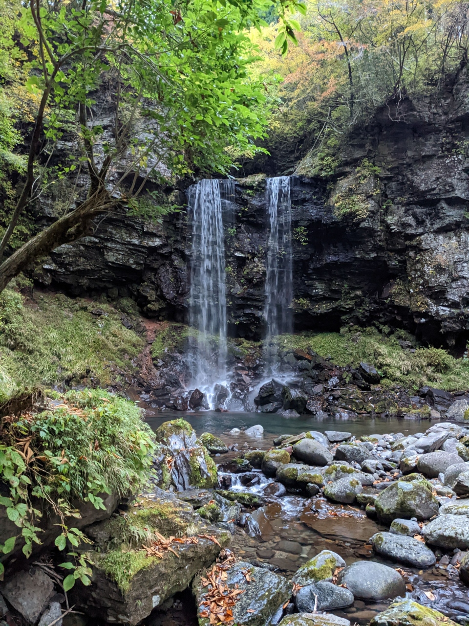 ひるがの高原から高山市方面へ下道で改装している途中に看板を見つけて立ち寄りました。長良川の源流に当たります。2つ並行して滝が流れていることからこのような名前になったのだと思います。先刻、阿弥陀ケ滝を見てしまったので迫力は感じなかった。