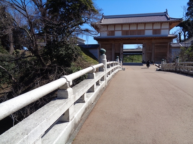 元々は江戸時代の初期に建てられた水戸城の大手門でしたが,明治時代になって解体されてしまったそうです.現在の大手門は令和2年に復元されたもので,国内でも屈指の規模の大手門だそうです.確かに,なかなか迫力のある門で,門の先に弘道館があることから,多くの観光客が門と弘道館を写真に収めようとカメラを構えていました.お勧めの写真スポットだと思います.