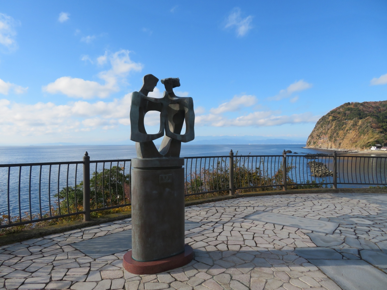 西向きに大きく視界が開けており、そのブロンズ像を入れた夕陽が楽しめるスポットです。