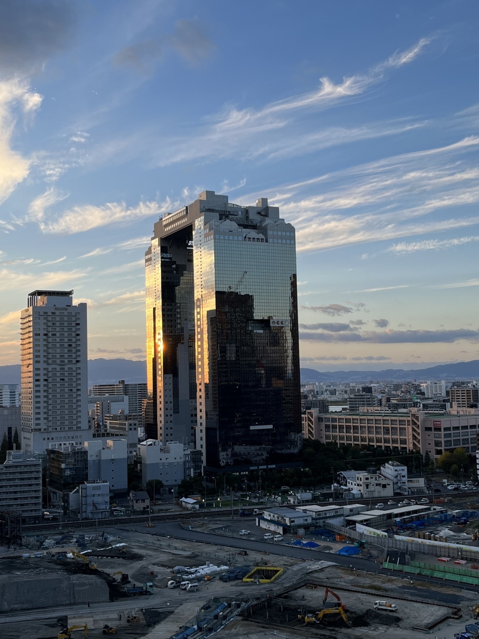 ルクアの11階のテラスになっている場所が風の広場です。眺望は普通です。目の前に、空中庭園のあるビルがそびえていて、ガラスの壁に建物が映り、夕方だったので、そのガラス壁がキラキラ光って、結構綺麗でした。ただこれだけですよ。