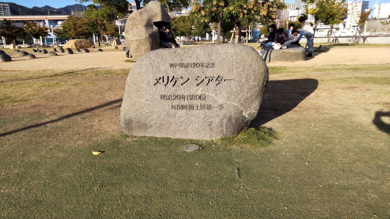 メリケンシアターの碑は?神戸港メリケンパークにある記念碑の1つです。1896年(明治29年)に2台の映写機が輸入され?日本で初めて上映されたことから、神戸は、映画発祥の地と言われています。この碑は神戸開港120年を記念して1987年に建てられたものです。神戸出身の映画評論家淀川長治氏が選んだ国内外の映画スターの名前が刻まれた石が42個並んでいます。お気に入りのスターの名前があるかも。