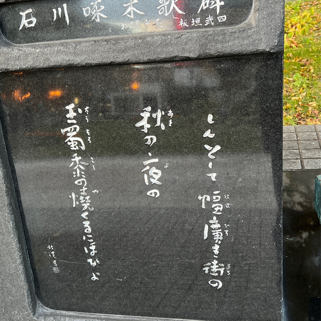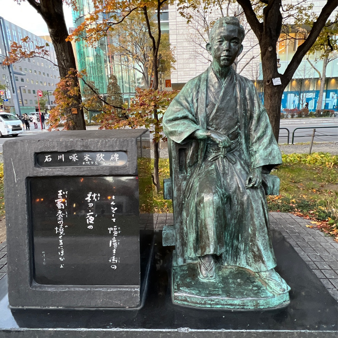 札幌にいくつかある石川啄木歌碑の一つが大通公園にあります。石川啄木銅像と並んで歌碑があります。