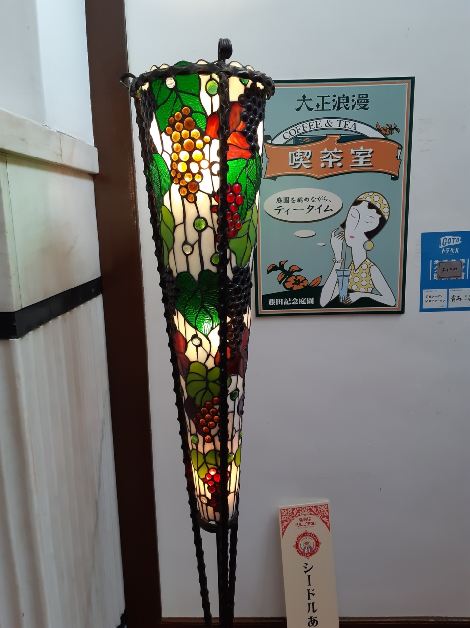 藤田記念庭園内の洋館にあるカフェです。藤田記念庭園は有料ですが、この建物は入口にあり無料で利用できます。席数は少なく、平日でしたが7~8組待ってたので休日はかなり混むのでは。でも、60分で退席するように案内があるので、40分待ち位で番がきました。テラス席希望か記入する欄があり、どちらでもと思ったのですが、運良くテラス席に案内されました。やはりテラス席は格別です。アップルパイは、市内の人気店の品で温めてくれるものと、冷たく冷やしたものの2種類あります。遅い時間だと売り切れの場合があるそうです。1つ440円で、こんなに素敵な建物の中で頂けるなんて、とても安いと思いました。