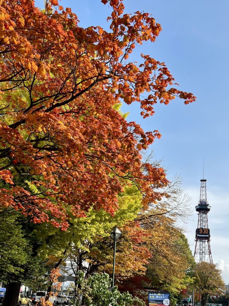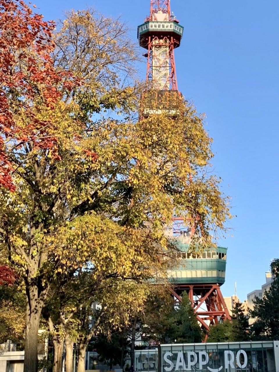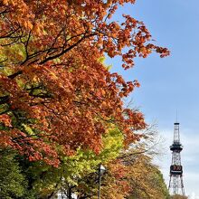 北海道大学金葉祭りを見た後、大通公園の秋の風景を見に来ました。札幌といえば、大通公園ですが、その公園の東の正面に、決して高くはないテレビ塔があります。テレビ塔が入っている写真は、それだけで札幌だと分かるくらいに、なくてはならない建物ですね。テレビ塔前の、丸広場は、今がちょうど最後の紅葉のようです。