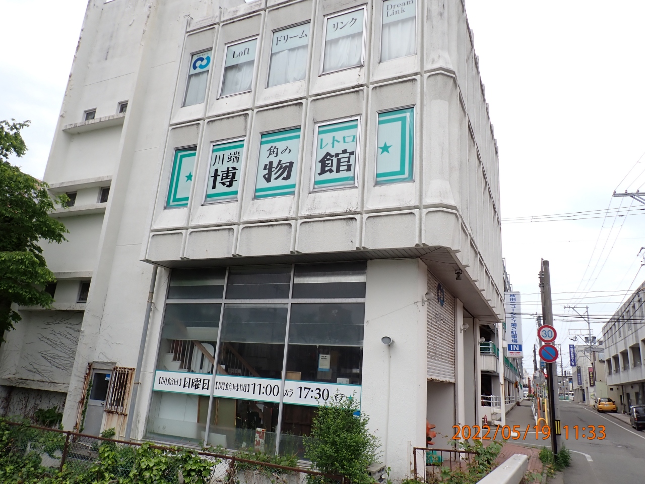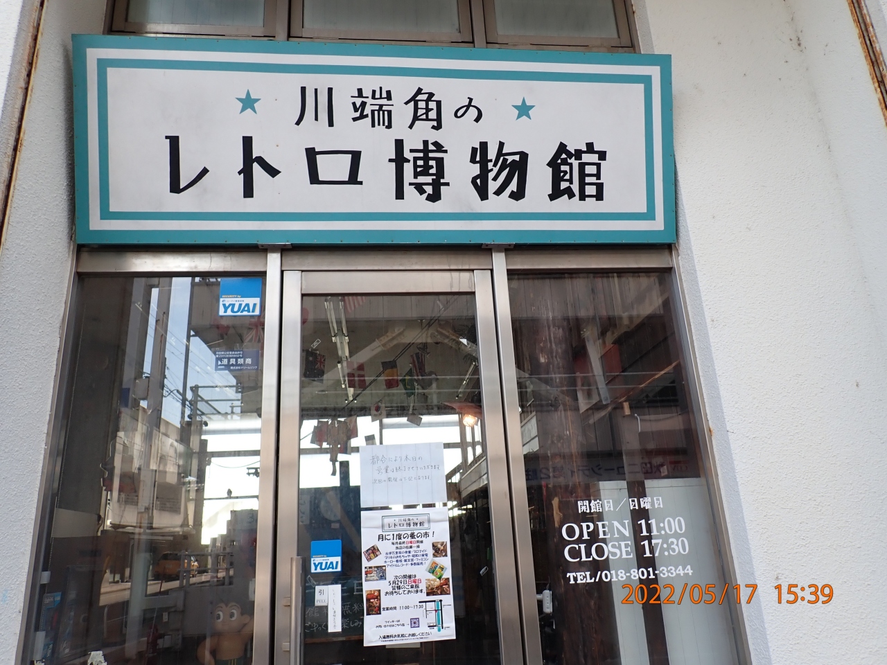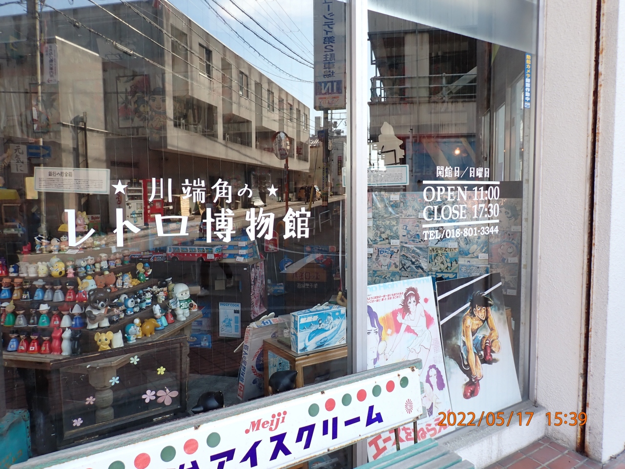 秋田市観光で立ち寄りました。川端角のレトロ博物館は、旭川沿いにあるちょっと不思議な感じのするお店です。旭川に架かる一丁目橋の西側の袂にあります。私の年代にとっては懐かしい品物が店内にたくさんありました。ただ、開店している日が少ないのが難点です。立ち寄った日は、開店しているはずだったのですが、予定より早くお店を閉めたみたいでした。次回は12日も先になるとのことでした。