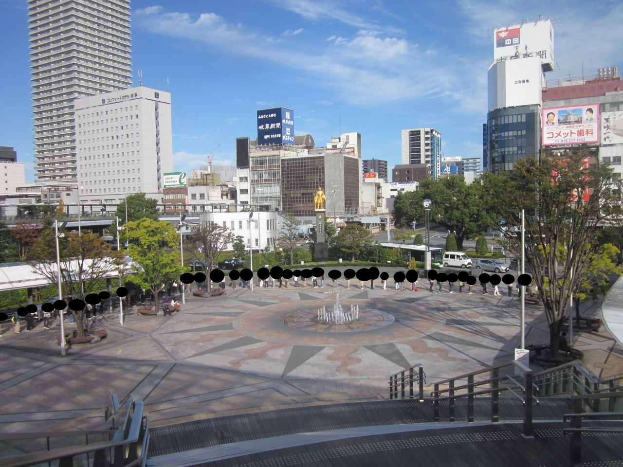 広場では、大学へ向かうバス停の行列が出来ていて、黄金の織田信長公像前まで続いていました。ネットで見ましたが、夜はライトアップされるようで、夜の観光もキレイでお勧めです。