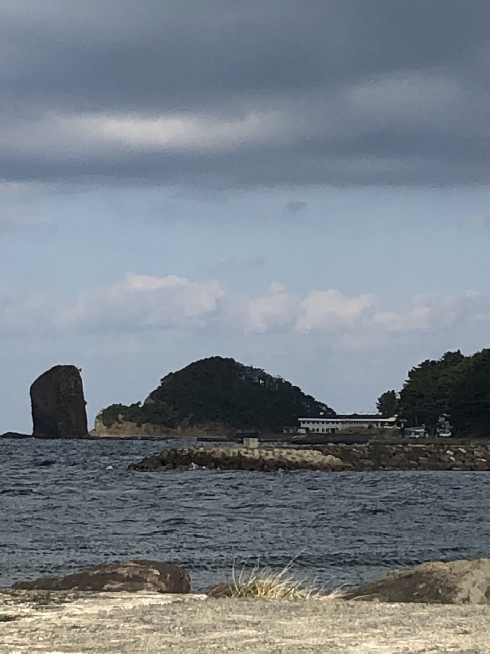 浅虫温泉街から見えます。海岸線からただ見るだけですが、この島だけ、木も生えずに裸なので目立ちます。