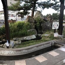 ロータリー横にあり、立派な松も前にありました。数人は、入れてお湯もいい感じですが、座るところが季節的なものか?コンクリートのため、長時間座っていると、冷たくて少し痛いです。