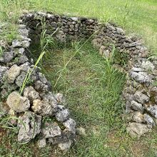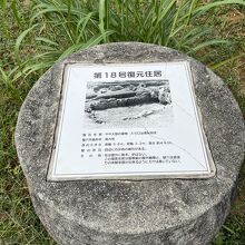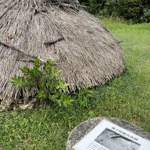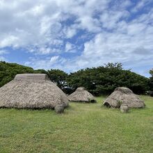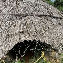 土の中を掘り起こして少し窪んだ地面に、大きな藁葺きの屋根。