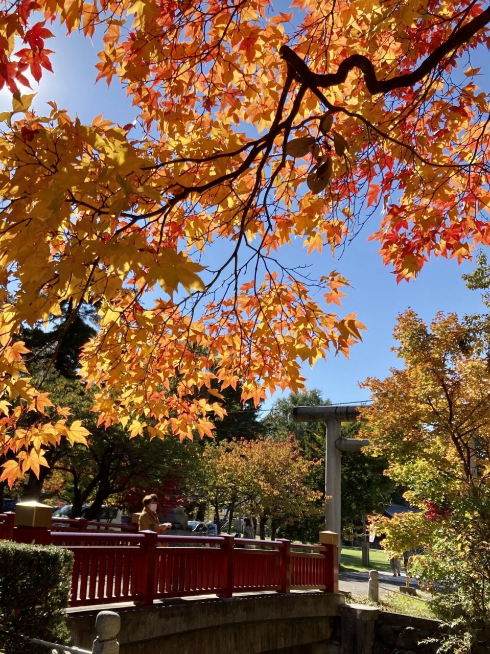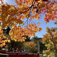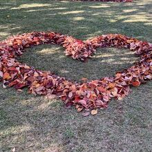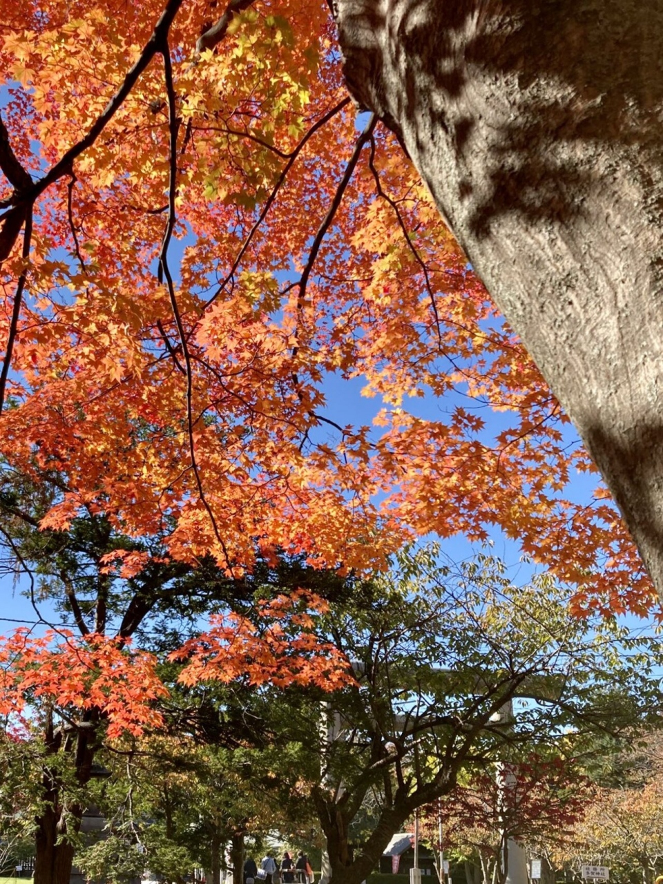 中島公園と、札幌護国神社を境にする鴨々川にかかる赤い橋、どうやら紅葉写真を撮るスポットの名所のようで、たくさんの人が集まって写真を撮っていました。境内の中の芝生の上に形取られたハートのマークが素敵でした。札幌護国神社は、北海道を開拓をした屯田兵の方々を祀ってある神社だそうです。