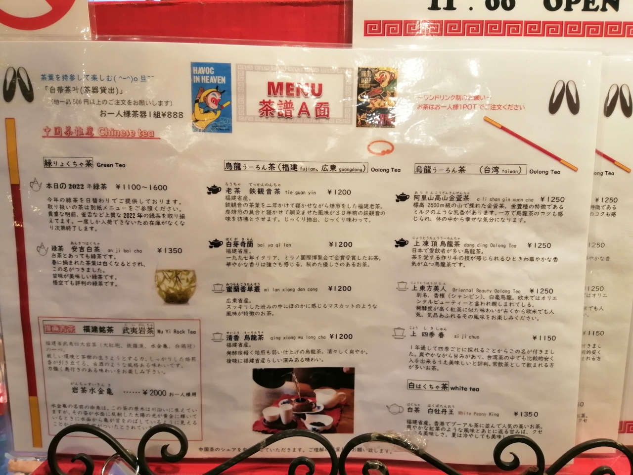 1階には中国茶や雑貨が売っていて、お菓子も少しだけ売っていました。2階の喫茶は人気なのか客席が少ないのかわかりませんが、平日でも順番待ちが出ているようでした。
